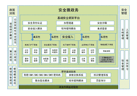 基础安全框架: 实现基于国密算法的安全身份认证、加密通道、统一登录、安全接入等功能;